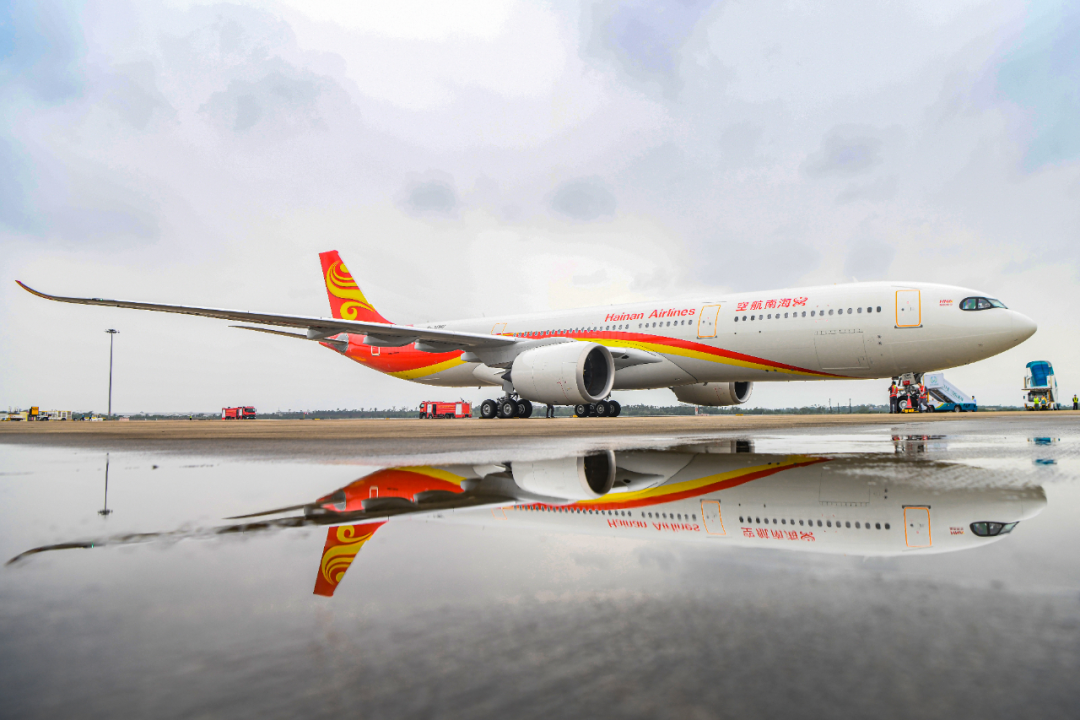 海南航空一架全新客机顺利降落在海口美兰国际机场中华金配。苏弼坤 摄